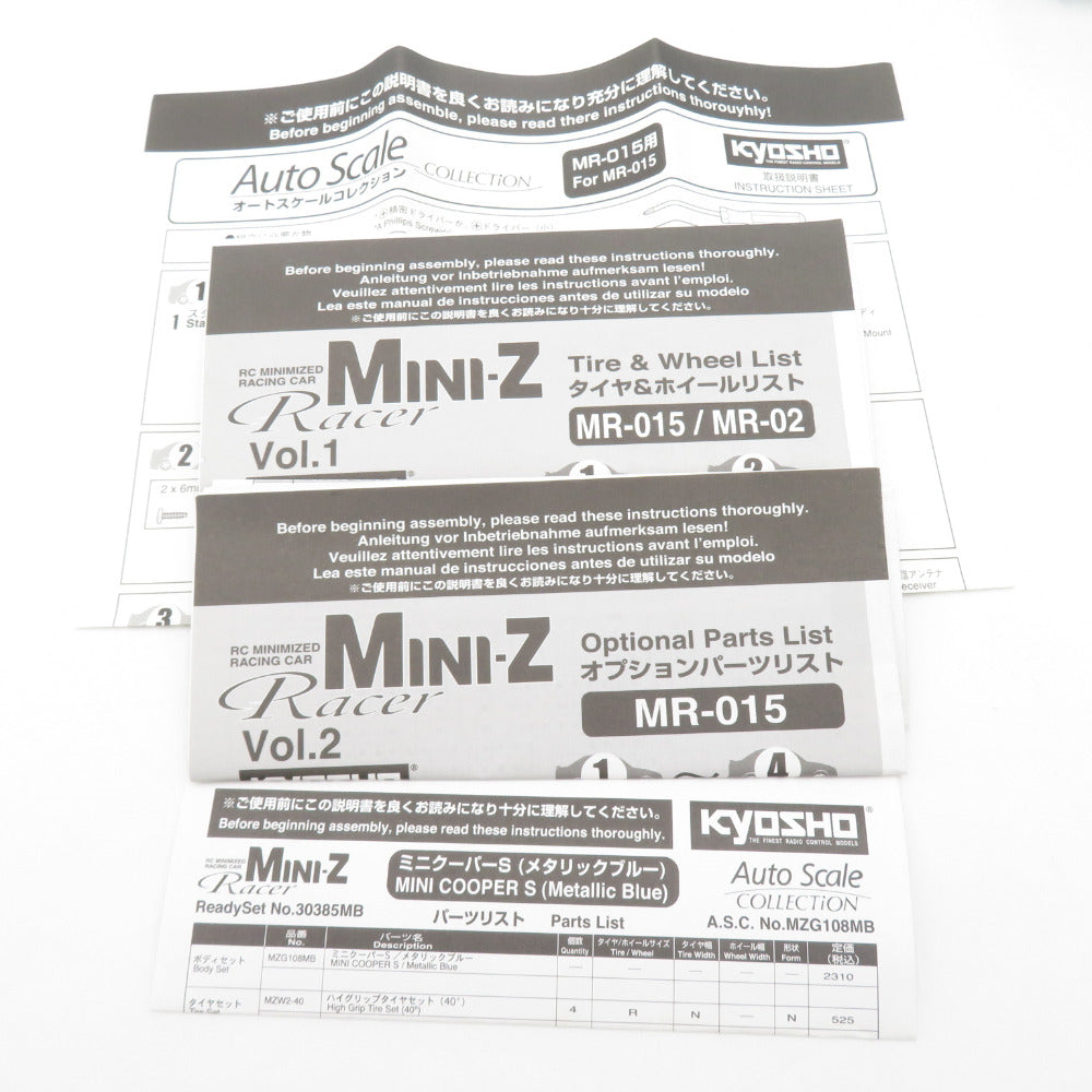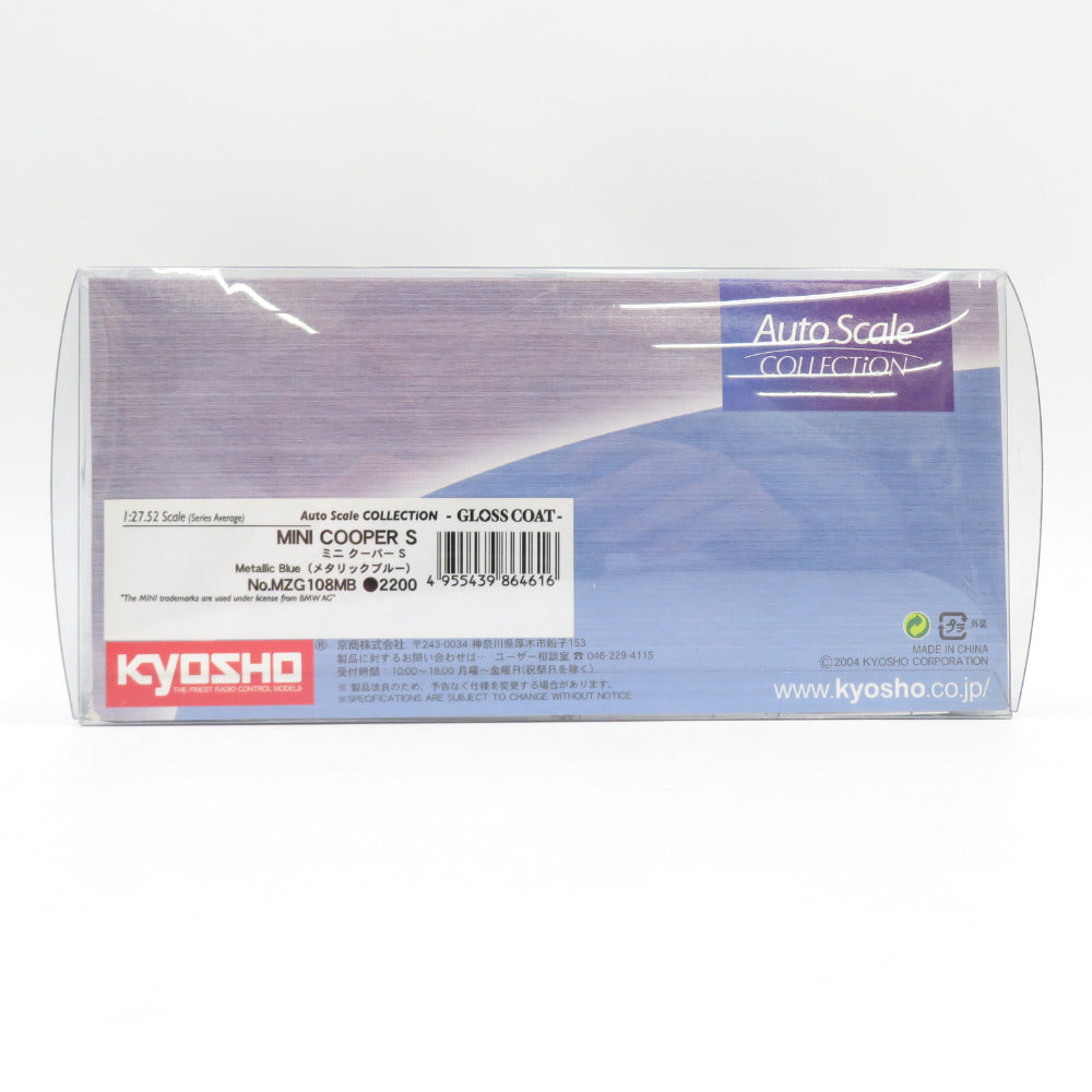 京商 ミニクーパーS Auto Scale COLLECTION -GLOSS COAT- 組立済品 ブルー 1:27.52スケール 取扱説明書、オプションパーツリスト、タイヤ&ホイールリスト、パーツリスト、カタログ |