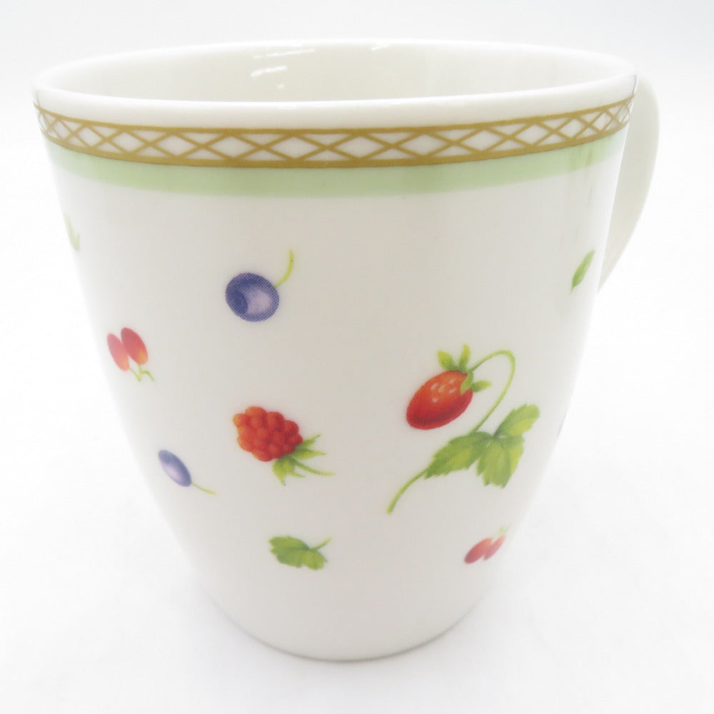 フルーツ柄のペアマグカップです。 高さ:約9.5cm 直径:飲み口部分 約8cm、底面 約6cm |