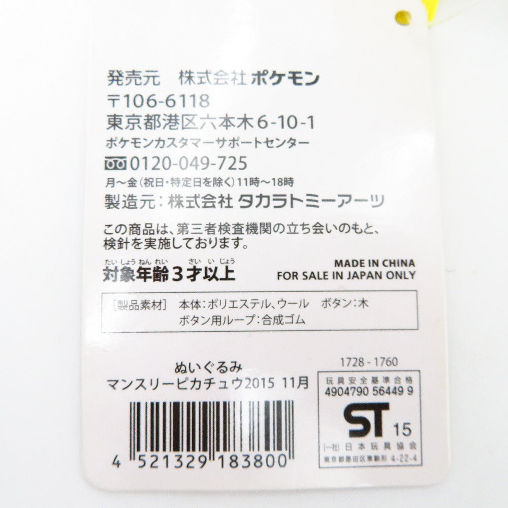 ぬいぐるみ マンスリーピカチュウ 2015 11月 「ポケットモンスター」 ポケモンセンター限定 美品